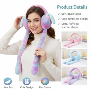 Cute rabbit earmuffs for girls made with soft plush material. Warm, lightweight and comfortable winter ear warmers for kids and teens. Perfect for cold weather and outdoor use.