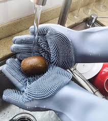 These Magic Silicone Washing Gloves feature built-in scrub bristles for easy cleaning. Heat-resistant, flexible and reusable for kitchen and household tasks.